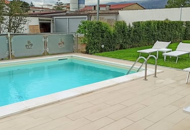piscina, solarium, giardino, zona barbecue e zona bimbi.